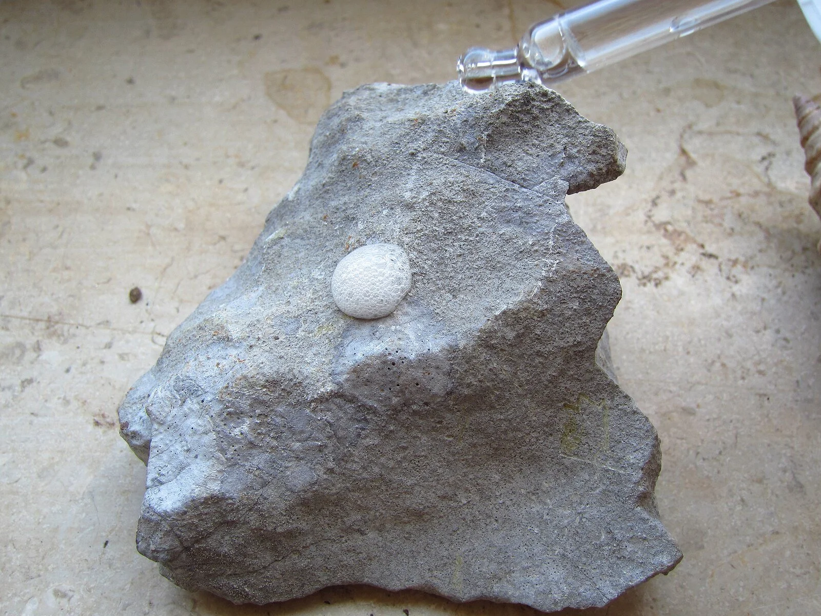A classic piece of limestone, fizzing under acid. Credit: P. Cikovac