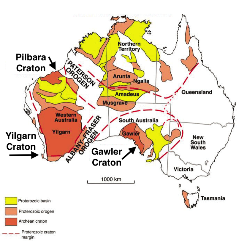 Australia Craton Map: modified from Garcia-Alvarez et al., 2014, originally from Smithies et al., 2011